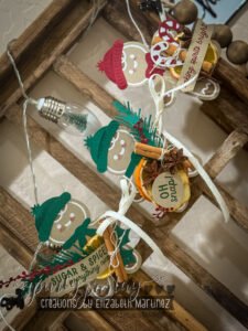 These gingerbread simmer pot gifts are doing the most in the best way. Inside the package is a layered recipe card and a cozy mix of simmer pot ingredients. On the outside is a gingerbread man embellishment that is way too cute to throw away, so I made sure it didn’t have to be. Once the bag is opened, the gingerbread men can be tied together into a festive banner.